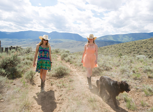 Two people walking together with horses at Sundance Guest Ranch in Ashcroft.