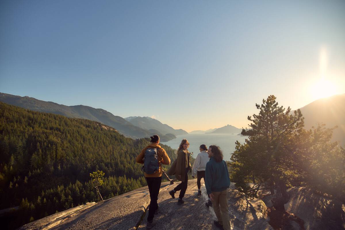 Friends enjoy views of Howe Sound and the surrounding mountains while hiking in Murrin Provincial Park south of Squamish. 家门口的大自然